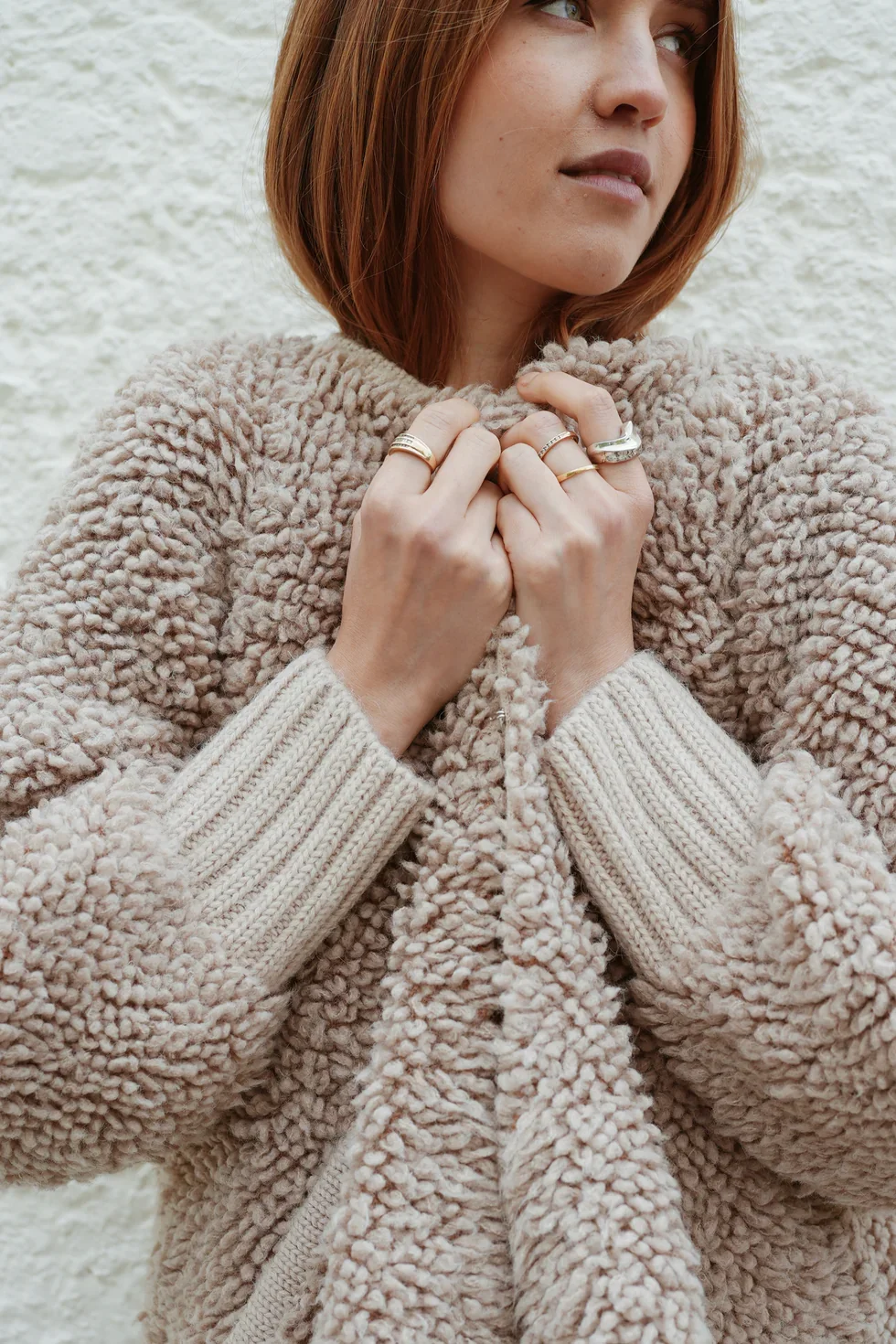 When Mirth Launched their AW25 collection, the knit jacket we designed together sold out in less than a week. Even more notable: it was the highest-priced style on their site, proving that a shearling-inspired knit can perform even in the heat of summer.