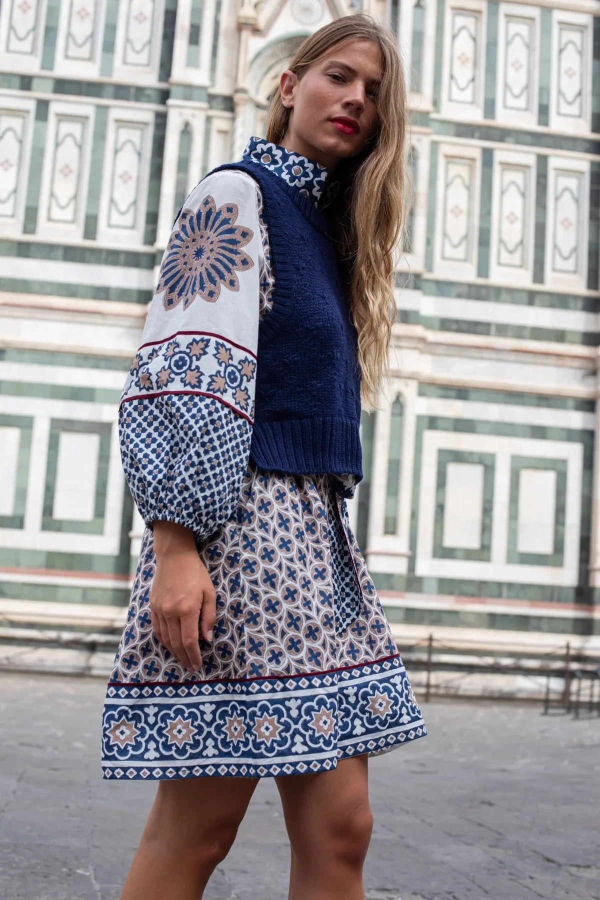 The result: the Longline Vest — a transitional piece designed to slip over Sue’s signature wovens or stand alone as a mini dress (my personal favorite).